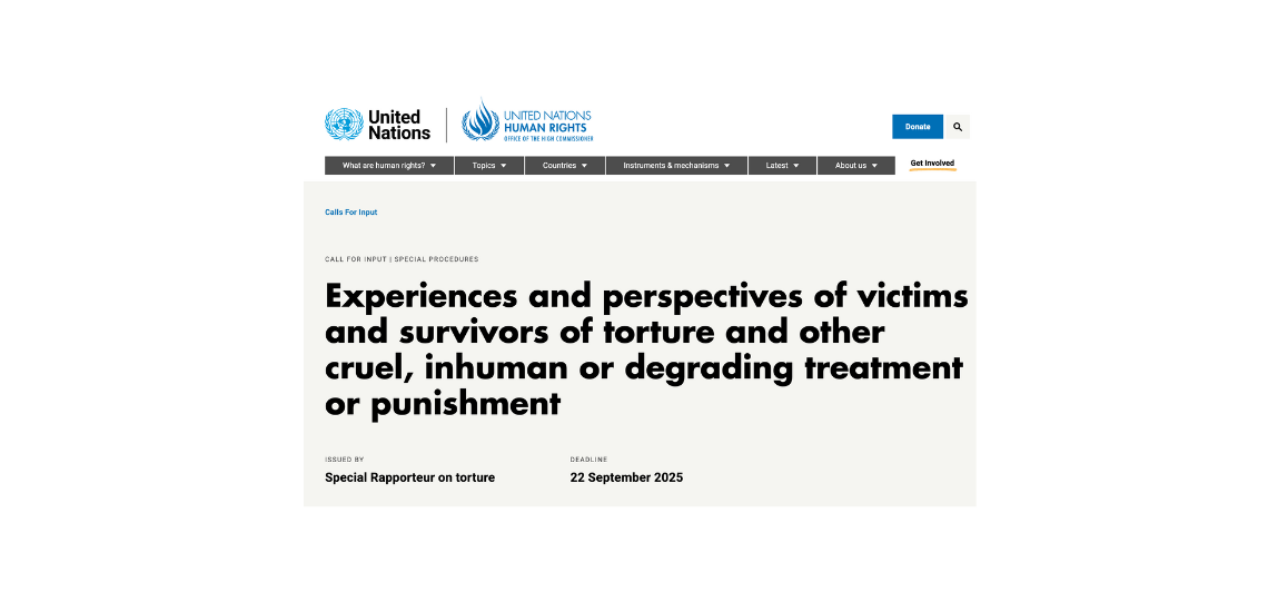 Das Hochkommissariat für Menschenrechte der Vereinten Nationen (OHCHR) sammelt derzeit Berichte von Betroffenen und Überlebenden von Folter sowie anderer grausamer, unmenschlicher oder erniedrigender Behandlung – dazu gehören auch Erfahrungen mit Schaden im psychiatrischen System. Den Aufruf findest du hier.